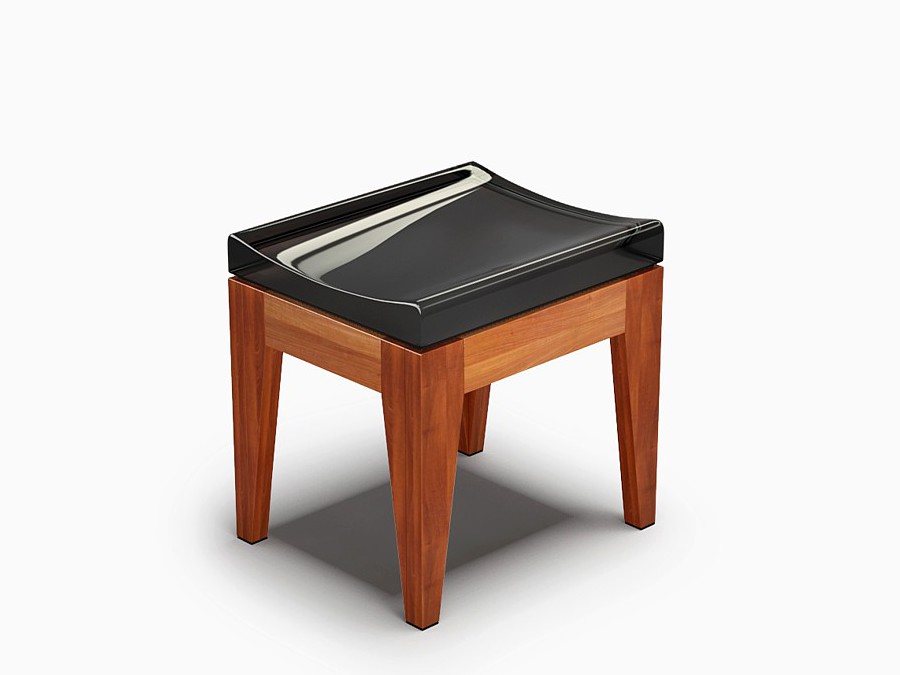 A madeira utilizada é de plantios sustentáveis, da marca LYPTUS. Ela recebe um selador e um verniz protetor sem brilho. Isso dá a ela uma proteção à respingos d’água, mas não a torna à prova d’água.